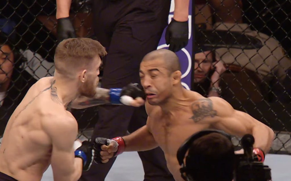Na luta, o irlandês tentou um direito de esquerda e passou longe, porém, quando Aldo armava seu próprio golpe, McGregor acertou em cheio um cruzado de esquerda e o brasileiro caiu duro no chão. McGregor ainda deu um toque na cabeça para garantir a vitória e McCarthy rapidamente interveio.