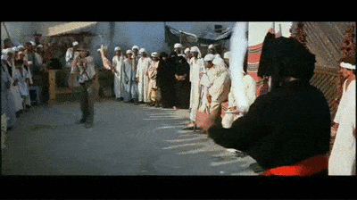 Mais do que isso, Caçadores da Arca Perdida é também um grande exemplo de como se deve fazer cinema de ação. Com uma câmera sempre fixa, Spielberg alterna planos ora abertos, ora fechados que dão a dimensão espacial da cena. Uma vez tendo isso bem feito, os combates podem se utilizar dos objetos ao redor para criar dinamismo, sem que assim fiquem confusos ou repetitivos. Perceba, por exemplo, como na famosa cena em que o adversário de Indy acaba morto pela hélice do avião, que a luta não se trata só do embate físico dos dois. Muitos outros elementos próximos também servem de arma, como a areia, os suportes que fixavam as rodas para que o avião não se mexesse, a metralhadora do avião, e é claro, a própria hélice.