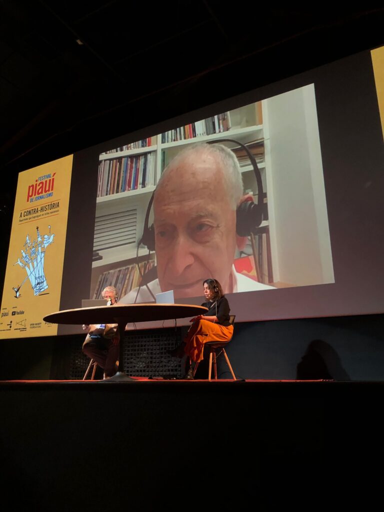 A conversa, que abriu o segundo dia de festival, às 9h30 do domingo (7), foi conduzida por André Petry, editor da piauí, e por Ana Clara Costa, repórter, também da piauí. Ana Clara substituiu Dorrit Harazim, jornalista do O Globo, que não pôde comparecer. Schocken participou virtualmente, já que não conseguiu vir para o Brasil, que teve como tema A contra-história – repórteres que bagunçam os mitos nacionais. Em pouco mais de uma hora de bate-papo, o publisher passou por assuntos como a invasão da Palestina por Israel, os ataques sofridos pelo povo palestino e a atuação da imprensa local, diante disso.