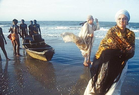 Na chegada da família real em Salvador, eles são recebidos por pessoas negras com pinturas corporais e que pouco falam português, o que difere da realidade, afinal, a cidade era a capital do país e possuía uma sociedade organizada [Imagem: Reprodução/Imdb]