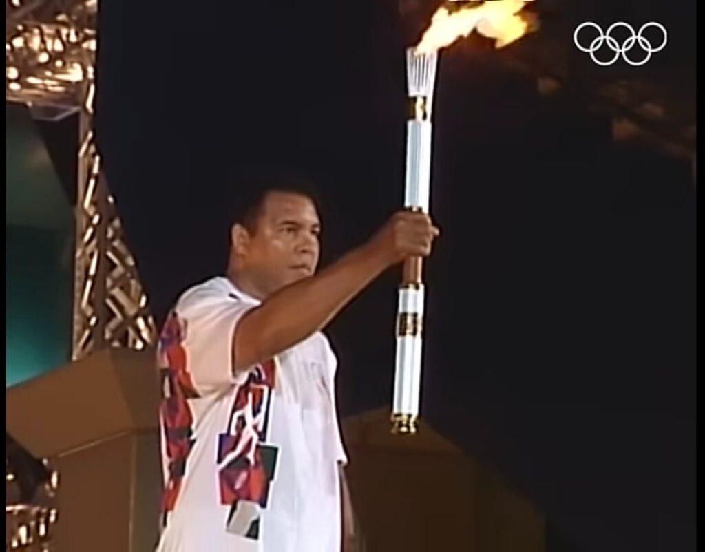 Ali acendeu a chama olímpica na Olimpíada de Atlanta, em 1996. No mesmo ano, ele foi à Cuba e conheceu Fidel Castro para prestar ajuda humanitária [Imagem: Reprodução/Youtube/Olympics]