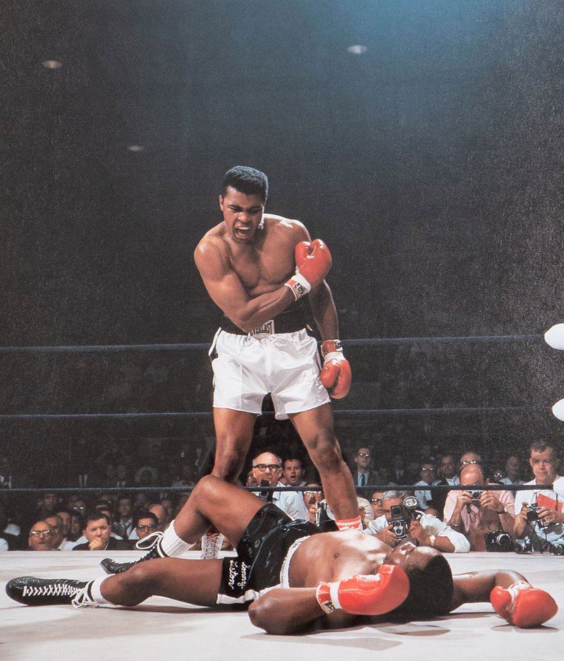 Os dois boxeadores voltaram a se enfrentar um ano depois, porém, o já Muhammad Ali, nocauteou Liston em apenas dois minutos de luta e gerou uma das fotos mais marcantes do esporte [Imagem: Reprodução/X/@itsme_urstruly]