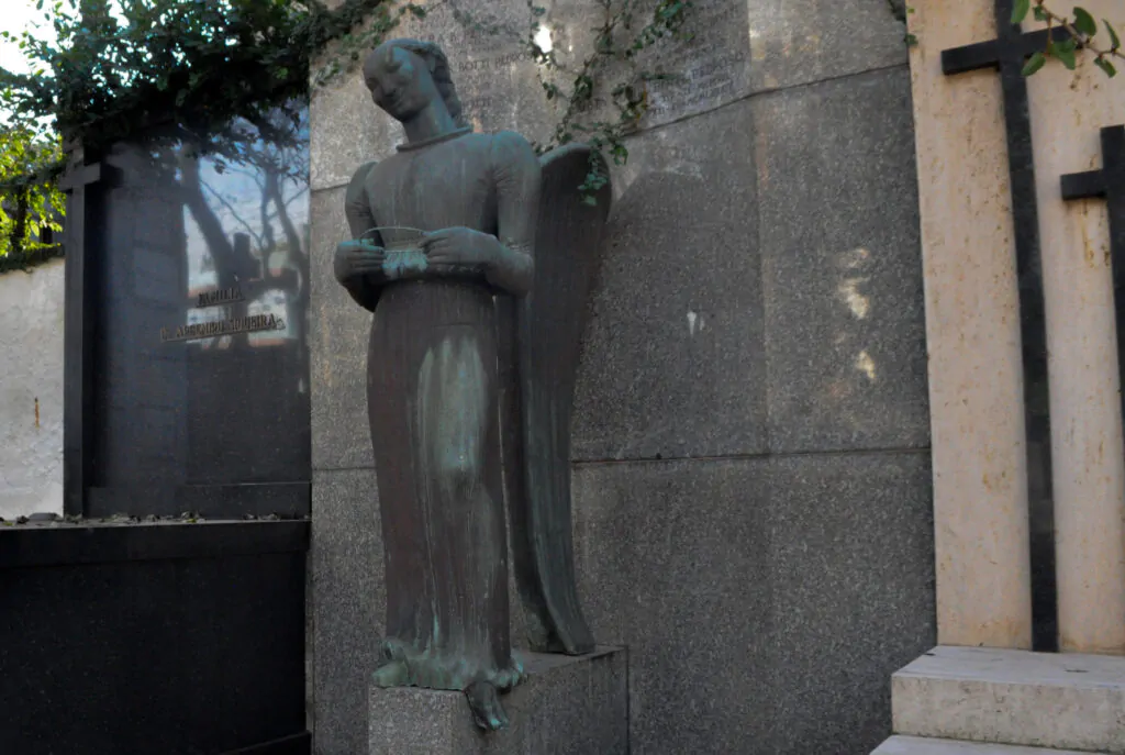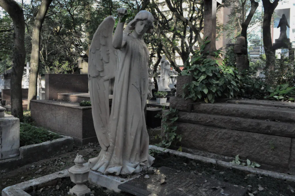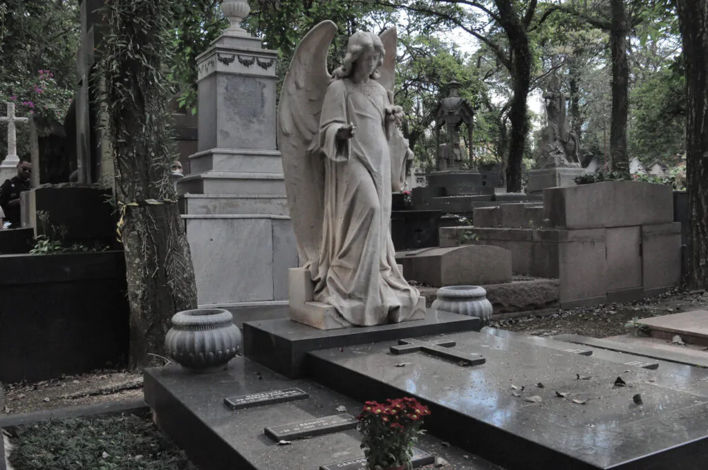 Imagens que remetem à religiosidade cristã, como anjos, são as mais frequentes entre as esculturas do cemitério