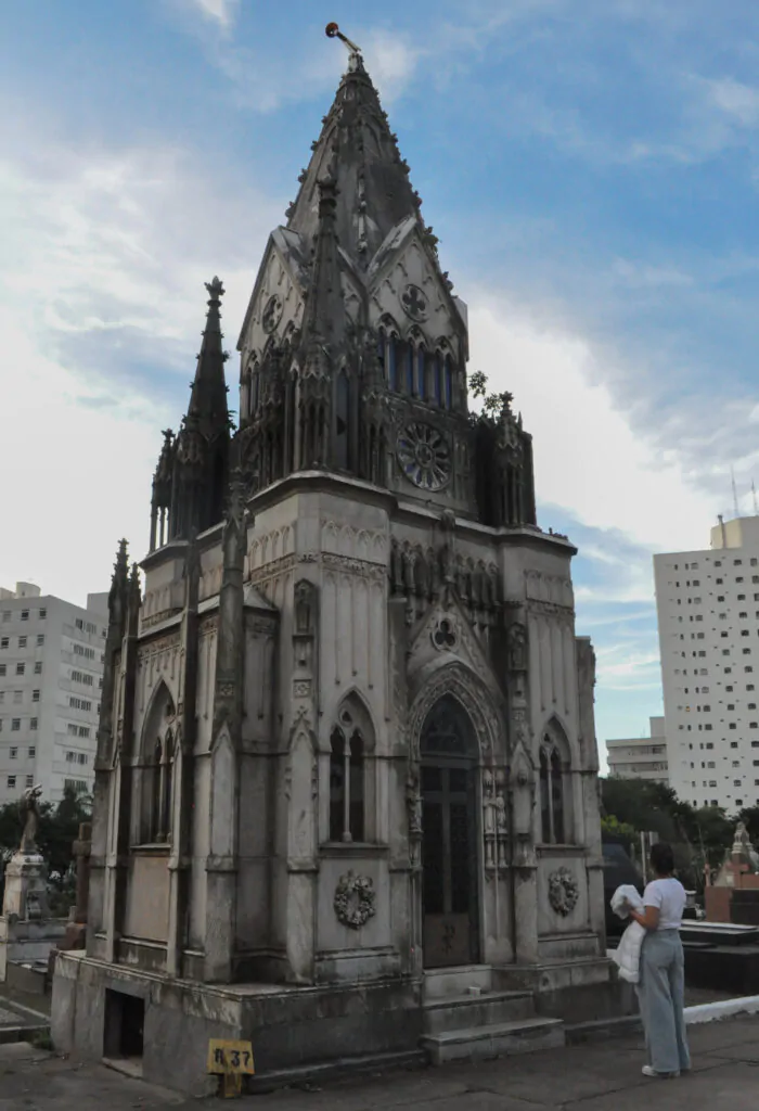 O Mausoléu da Família Siniscalchi, uma miniatura de templo gótico italiano foi projetado por Ocheri & Barrieri, da Marmoraria Savóia