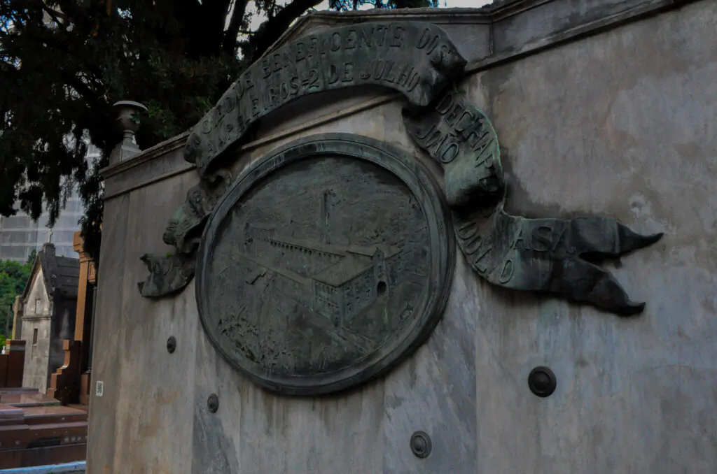 Obra de Vicente Larocca para a Família Comm. Sabbado d’Angelo, dona de um grande negócio de tabaco, ao lado, está um dos mausoléus mais altos do cemitério