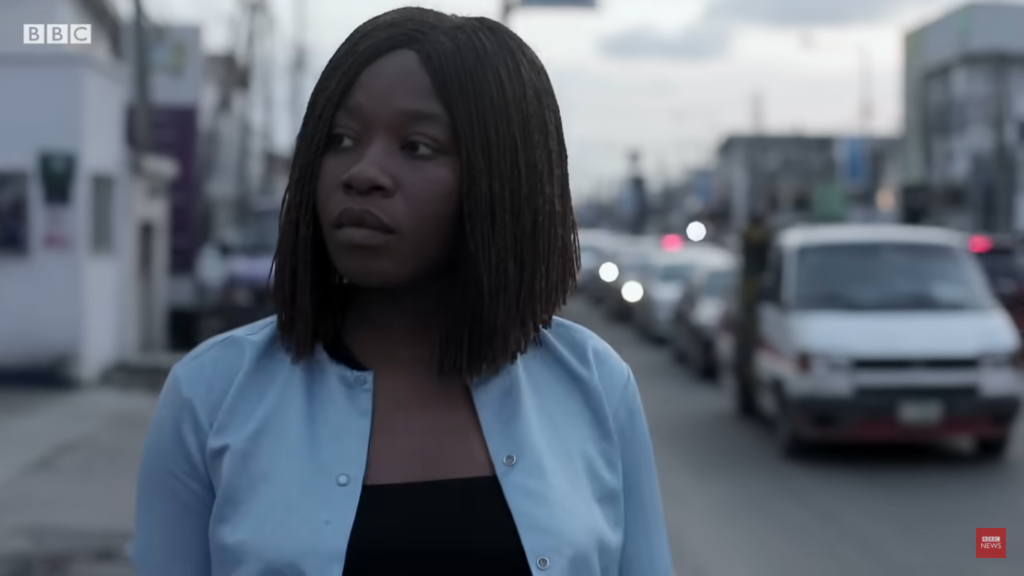 Kiki Mordi compartilha sua história de assédio no documentário Sex for Grades [Imagem: Reprodução/BBC Africa Eye]
