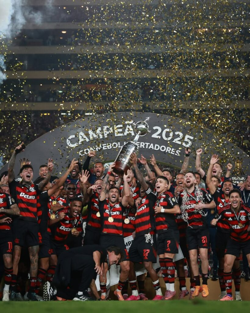 O Flamengo vence a final e se torna o primeiro clube brasileiro a conquistar quatro edições de Libertadores, três das quais foram vencidas nos últimos seis anos [Imagem: Reprodução/Instagram/ @Flamengo]