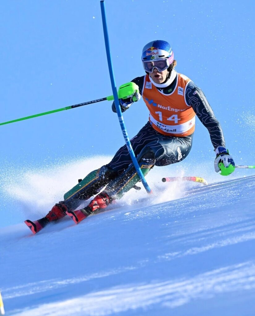 Foi no slalom gigante, porém, que o brasileiro entrou para a história. Dois dias antes da eliminação que encerrou o sonho de duas medalhas em uma mesma edição de Jogos de Inverno, Pinheiro Braathen foi o atleta a inaugurar a prova da modalidade gigante. Essa categoria se diferencia do slalom simples por apresentar um percurso mais longo e com mais portas.