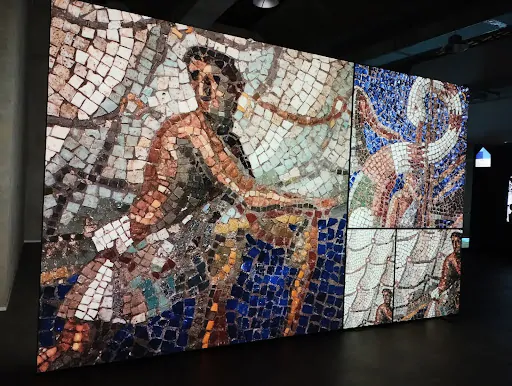 Há sete áreas expositivas diferentes, que tratam desde a história da arte mosaica, até aspectos mais técnicos e específicos dos mosaicos. A visita multimídia dispõe de projetores e telas capazes de reproduzir detalhadamente os mosaicos, além de contar com o apoio de áudio, que traz aos visitantes detalhes sobre as obras e sobre os lugares onde essas se encontram.