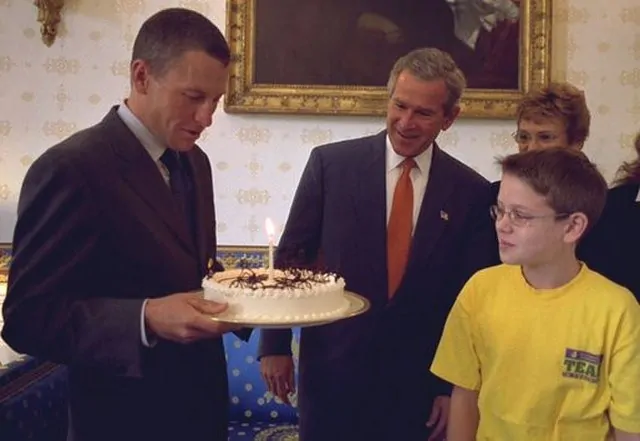 Com o passar do tempo, o prestígio de Lance Armstrong cresceu a ponto de desenvolver uma relação com o presidente estadunidense da época, George W. Bush [Imagem: Reprodução/Wikimedia Commons]