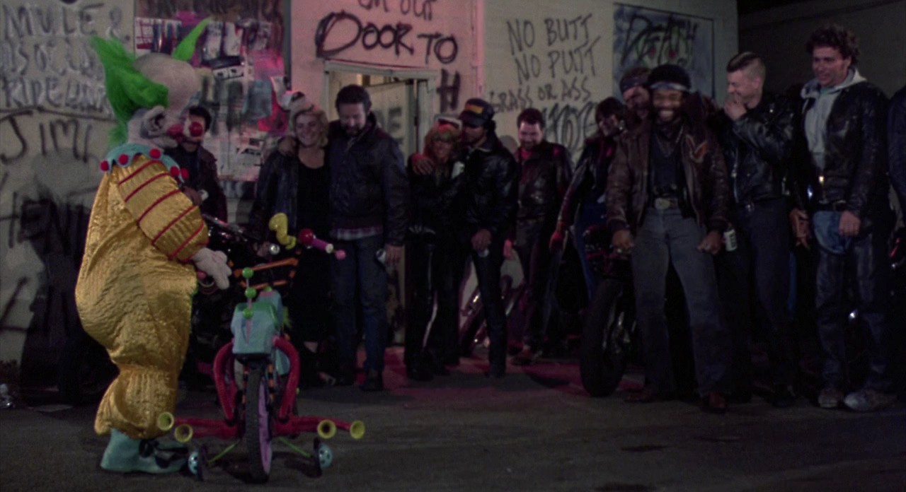 E quando você acha tudo isso já seria o suficiente para garantir o longa na prateleira de filmes trashs, cada novo acontecimento te surpreende. Como quando um dos alienigenas, em uma cena que deveria causar o minímo de repulsa, vai sugar o sangue de uma das vítimas presas nos casulos de algodão doce e para tal retira um imenso canudinho colorido e retorcido, como de criança. Mas as bizarrices não param por ai: temos ainda o momento no qual um palhaço, em meio a uma luta com uma gangue de motoqueiros que ousou rir da extravagância de sua moto, arranca a cabeça de um dos opressores – com um único soco. Ou quando um policial é transformado em uma pilha de ossos após ser severamente atingido por uma quantidade imensa de tortas.
