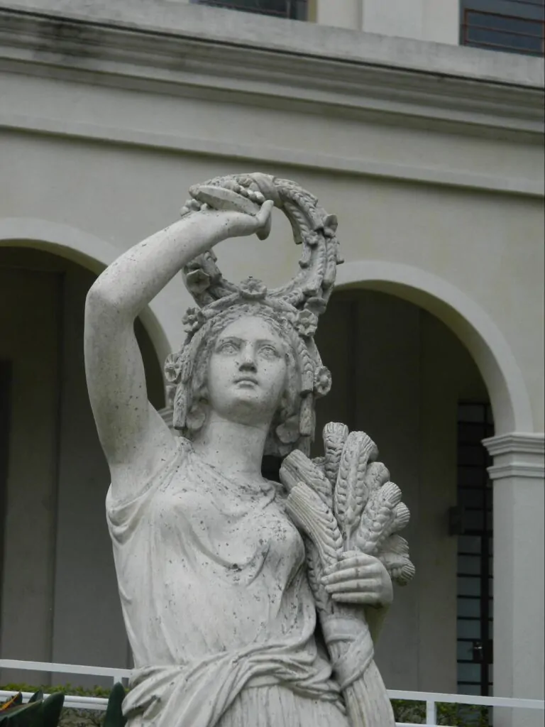 O jardim do museu sintoniza-se à aparência visual do prédio, marcado pela presença de duas estátuas de inspiração clássica em torno de sua fonte. Ambas, preservadas desde 1900, foram fabricadas pela empresa franco-alemã Villeroy & Boch e alegorizaram a Agricultura, a Arte e os Ofícios.