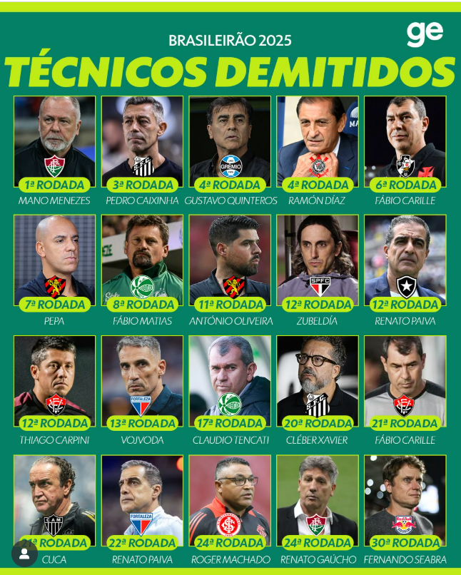 Em mais uma temporada do futebol brasileiro, os problemas seguem os mesmos: a troca de técnicos já virou parte do jogo. No Brasil, a pressão por resultados constrói um sistema viciado em recomeços sem planejamento, que culminam em mais demissões e contribuem para o revezamento de treinadores. Em 2025, nas 38 rodadas do Campeonato Brasileiro, 22 comandantes foram demitidos.